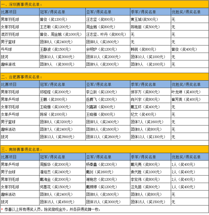 公司對勝出者頒發了獎金(附表):
