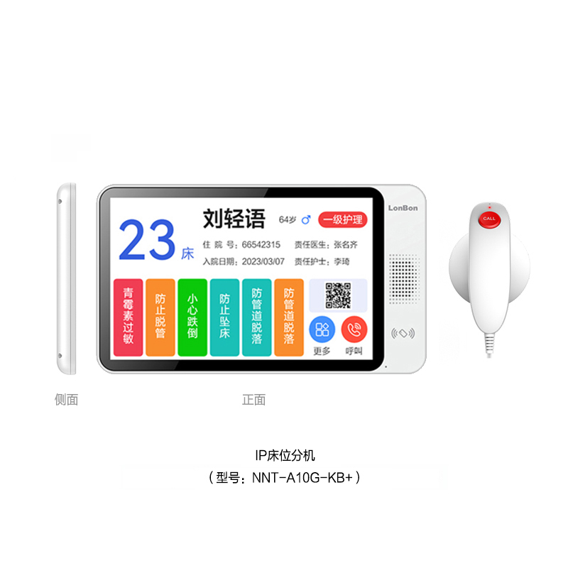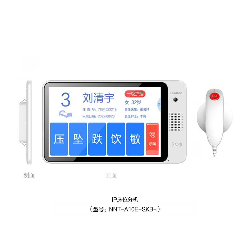 IP床位分機(10.2英寸觸摸顯示屏,嵌入式,型號:NNT-A10E-SKB+)。