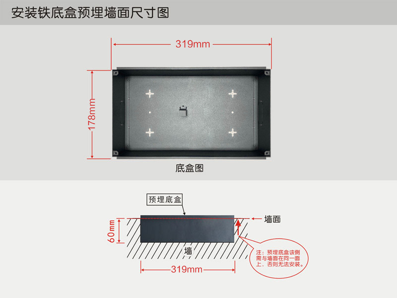 安裝鐵底盒預埋墻面尺寸圖