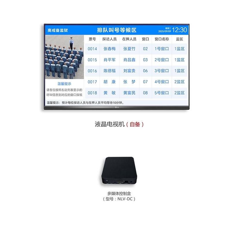 ? 控制盒通過HDMI方式連接液晶電視,安裝在家屬、在押人員會見區等場所。
