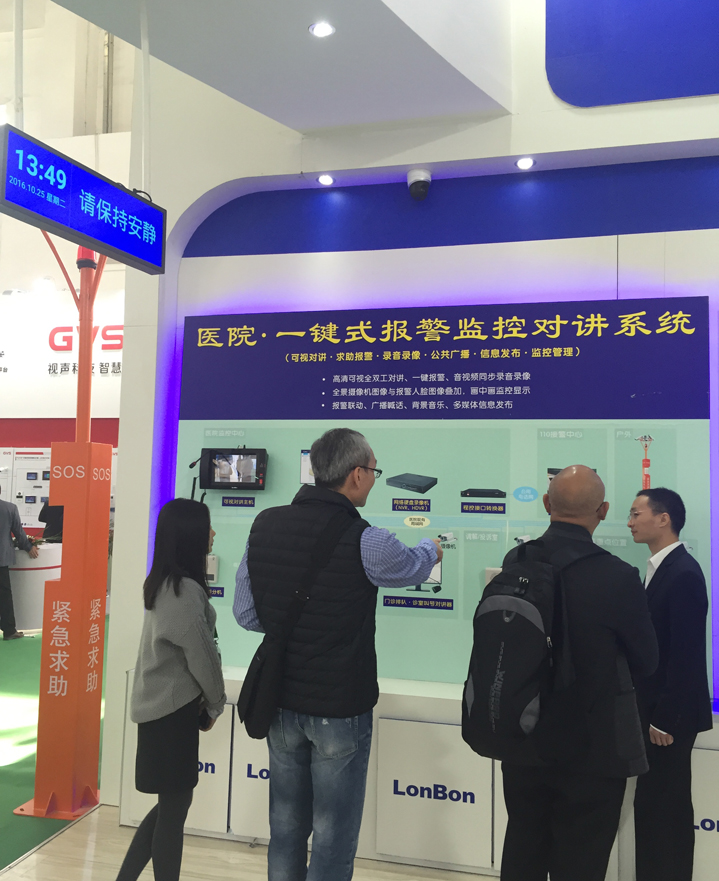 ??  2016年,全球聚焦的“2016年中國國際社會公共安全產品博覽會”,于2016年10月25日-28日在北京市隆重舉辦,是安防領域最具權威、最具影響力的國際品牌展會。此屆我公司展出“監獄智能監倉對講”、“監獄探訪對講”、“銀行窗口監控對講”、“銀行ATM監控對講”、“醫院智能醫護對講”、“醫院ICU探訪對講”、“醫院一鍵式報警監控對講”、“學校校園可視對講”、“學校教室擴聲系統”系列新款產品,并為客戶提供新的解決方案。歡迎新老顧客蒞臨、參觀指導。